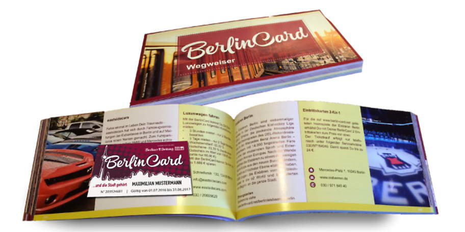 „BerlinCard“ heißt die neue Vorteilskarte mit zahlreichen Angeboten in und um Berlin. Karteninhaber können mit einer Begleitung Berlins kulinarische und kulturelle Vielseitigkeit entdecken und dabei den Geldbeutel schonen. Nahezu alle Angebote enthalten die 2-für- 1 Option, d.h. BerlinCard-Inhaber sparen bis zu 50 %. Es gilt dabei das „So-oft- Du-willst-Prinzip“, denn in der Regel sind die Angebote beliebig oft nutzbar.